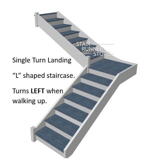 Custom Landing Fabrication Labor - Turns LEFT when walking up the staircase. This service results in a stair runner with continuous appearance once installed.